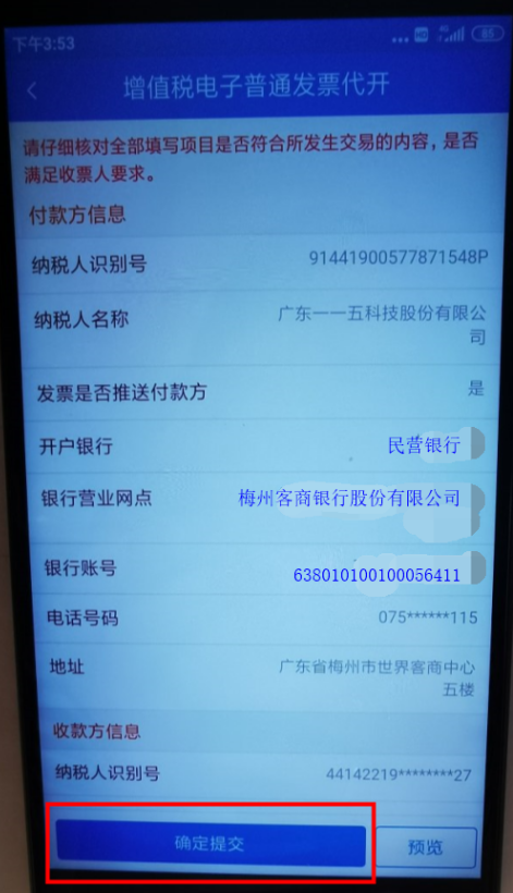 6.检查并确定清楚开票的相关信息后,可以点击提交,缴交相关税费。